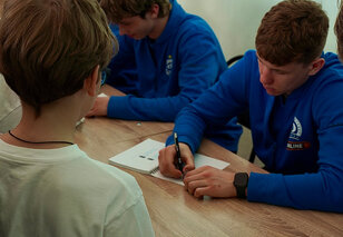 Завершылася сустрэча аўтограф-сесіяй, а напрыканцы нашы хлопцы падзякавалі за прыём і запрасілі школьнікаў на дамашнія матчы мінскага "Дынама".